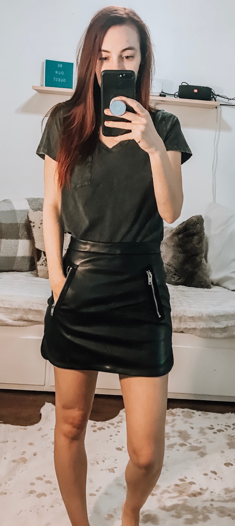 I actually had another faux leather skirt from Amazon that I wore to a previous bachelorette party but it was really short when I sat, so I tried this one that is a bit longer in the back—perfect to pair with those ubiquitous matching t-shirts. This was my favorite thing from the entire order–versatile, fits well, and has POCKETS!