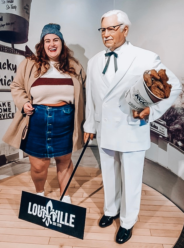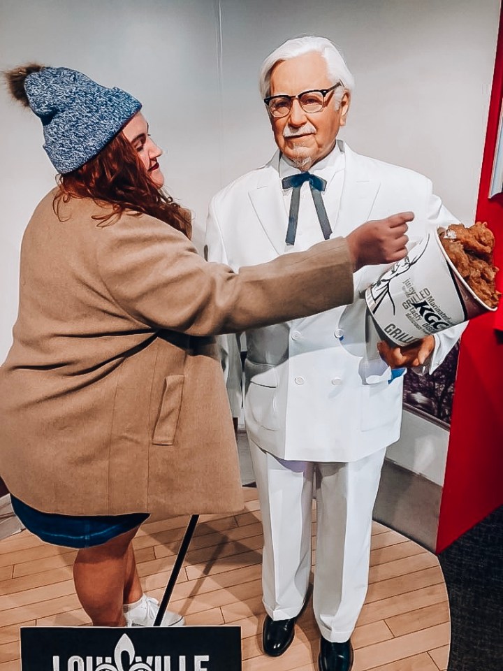 We decided to stop at the Louisville Visitor Center on Saturday afternoon to pick up our passports and learn more about the Urban Bourbon Trail. I also bought a few postcards (my fave) and got a free cooler bag by tweeting a photo with their wax figure of Colonel Sanders.