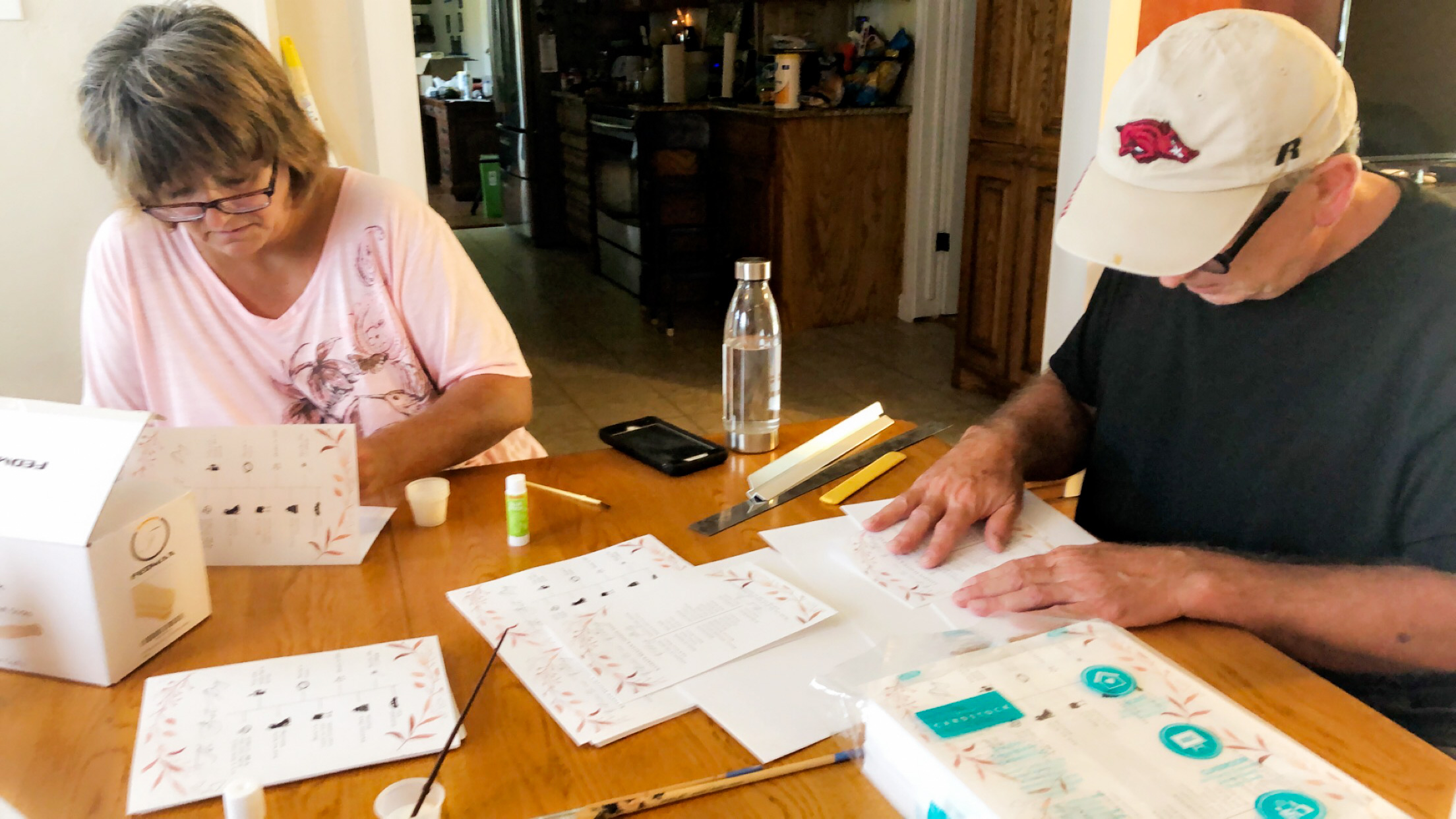 Then came time for program assembly. We set up shop at my parent’s dining room table and went to work. After my mom and I got our gluing system down, we even got my dad involved. It was so much fun doing something crafty with my parents, spending uninterrupted time with just the two of them. We only finished half of them that afternoon, so the next time I brought Joe to help knock them all out. The 4 of us had a great time getting them done, making fun of each other, being little perfectionists, and not taking ourselves too seriously.