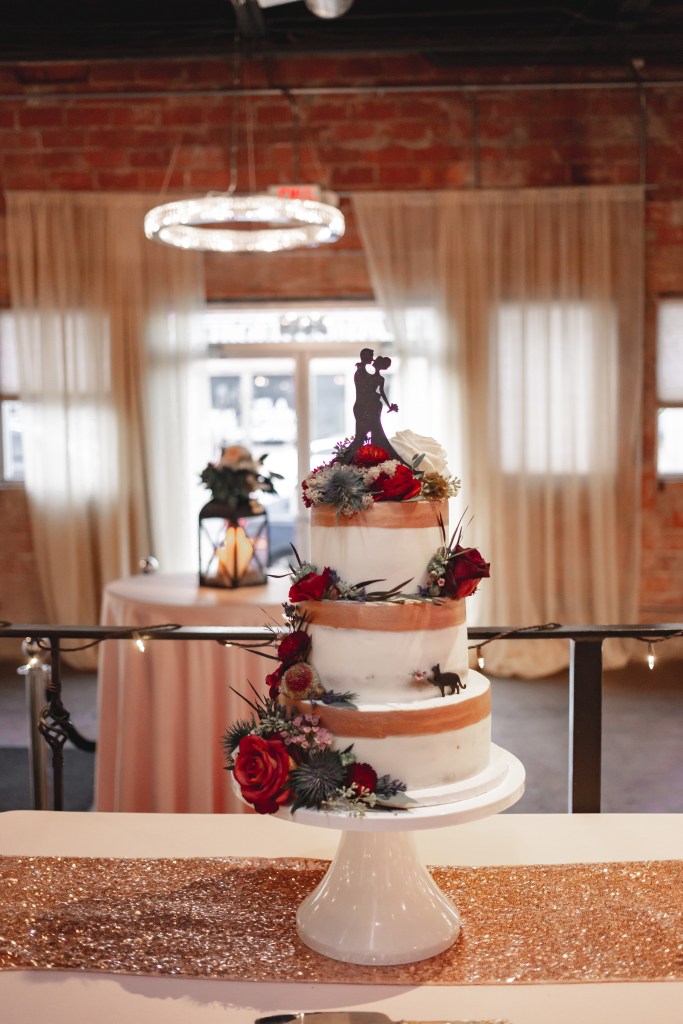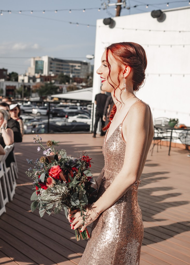 We. Looked. Amazing. My dress, while something I didn’t expect to pick out, was gorgeous. I loved the way it twirled and moved, I loved the way it made me feel while wearing it. My hair and makeup artist did a phenomenal job: she and my florist made my look like a Disney princess with flowers tucked into my cascading braid. Joe rented his navy tux from The Black Tux and it made him look so sharp. (The rental process was super easy, too! Highly recommend them for your tux/suit rental needs.) All of the groomsmen cleaned up very nicely (except perhaps, for the one who was drunk the entire day). My bridesmaids’ dresses were mix-&-match in blush and rose gold, sequins optional but encouraged, and they looked phenomenal together—something my mom was a bit wary of, since we had never seen the dresses together in person! We came dressed to impress, and then to party; I think we exceeded both of those goals with flying colors.