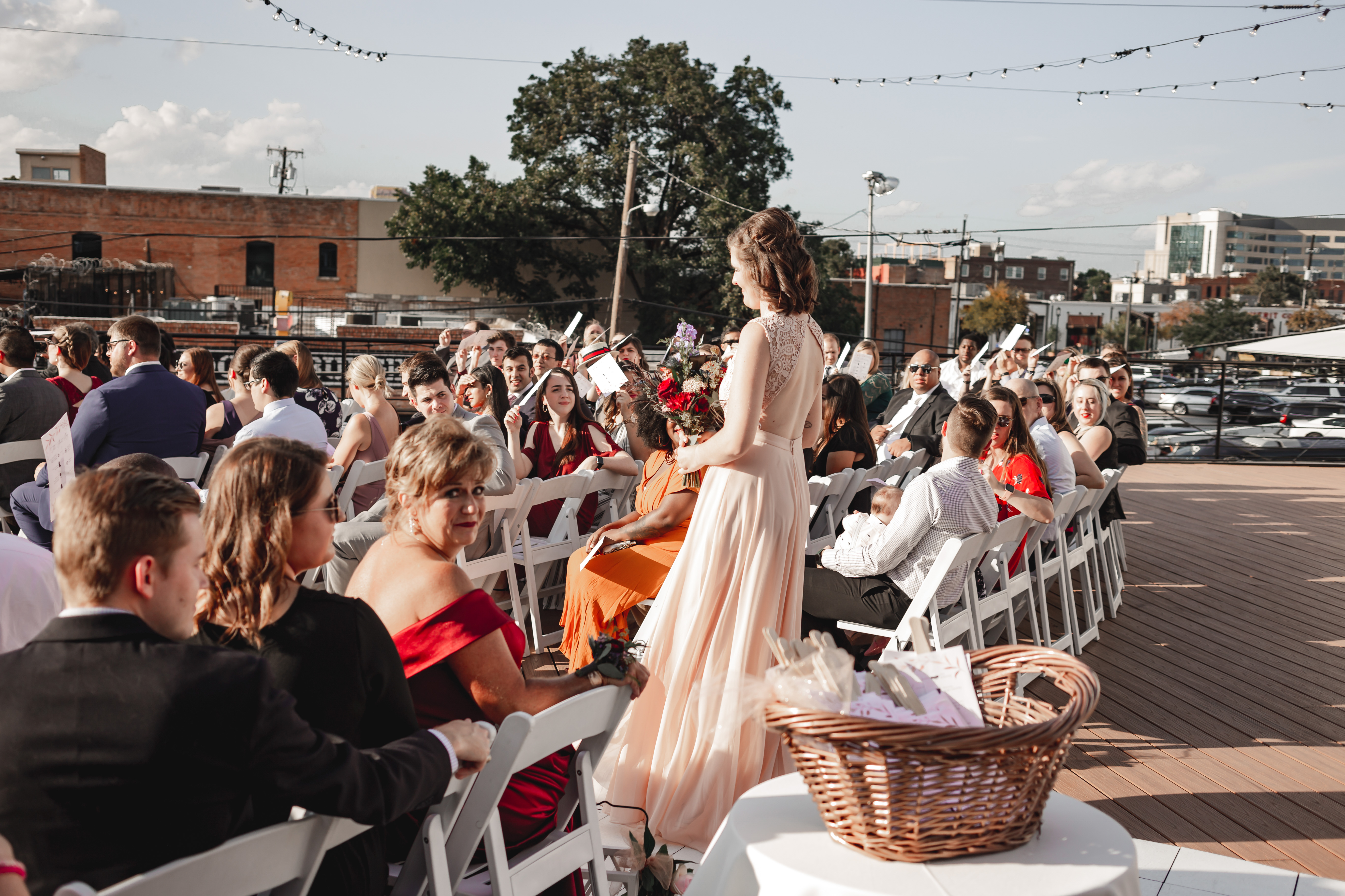 The bar was one of our most important priorities, so we wanted to make sure was awesome, and it was. We booked a venue that allowed us to bring in our own alcohol to be served by our bartenders, which is the best way to do it because there’s no markup on the bottles, we got to pick out exactly what we wanted, and then we returned any unopened alcohol the next day. Joe and I had a lot of fun doing wine tastings: one we did at Total Wine, and the other two we DIY’d with a bunch of Sam’s club and Spec’s wine. Our neighbors made the Spec’s one super fun by acting like our sommelier and trying them with us. In the end, we purchased our wine in bulk from Costco despite having never even tried it, because it was the cheapest. No one noticed or cared that the wine was “cheap”, which left room in our budget for other priorities.