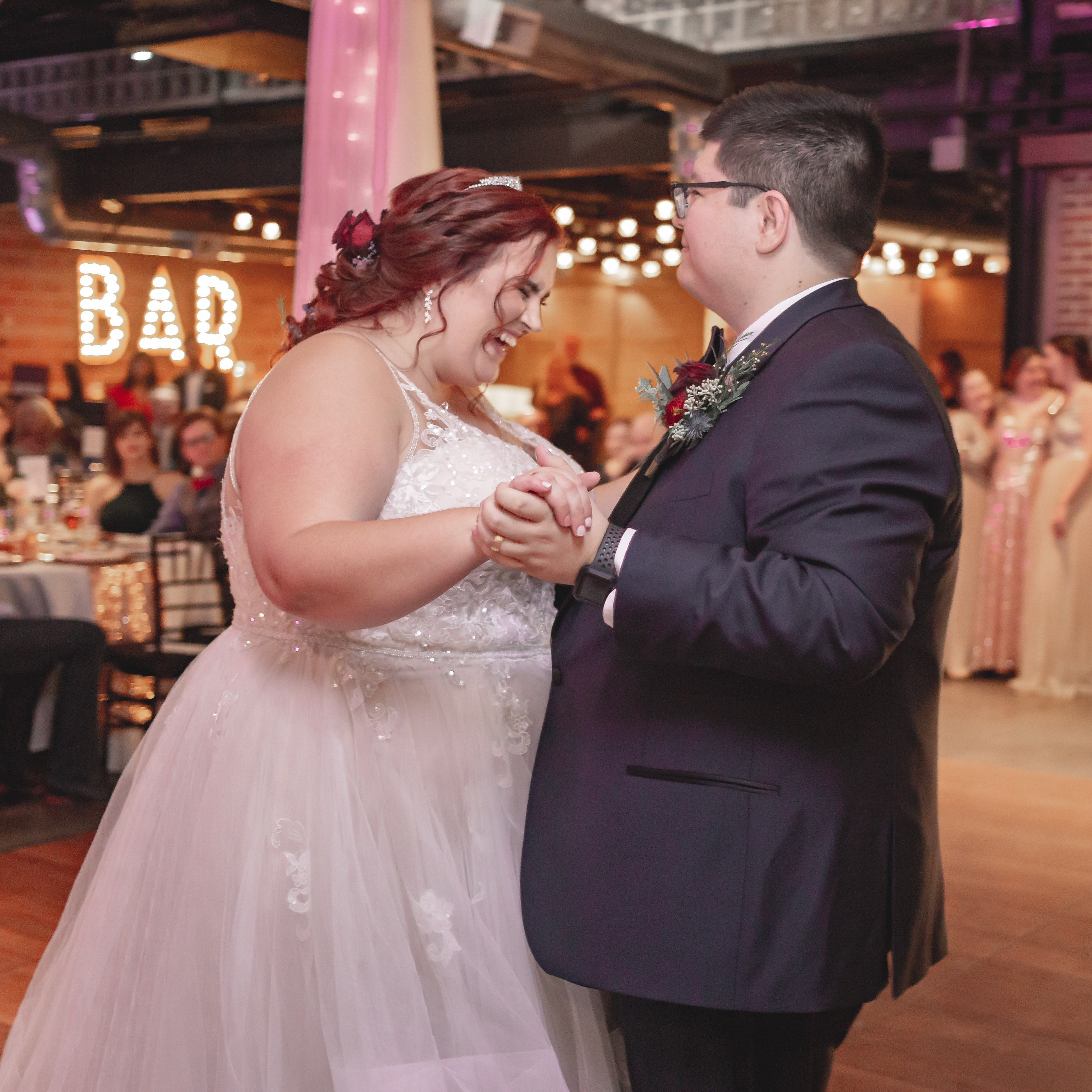 We took dance lessons in the weeks leading up to the wedding, but I wouldn’t say that’s something you have to do to to have a great first dance. If dance lessons aren’t your thing, skip them! That money can be better spent elsewhere in your budget on things that are your thing, and people are going to love watching your first dance even if you just sway back and forth and giggle at each other. They came to see you be happy, and that is how your first dance is going to be.