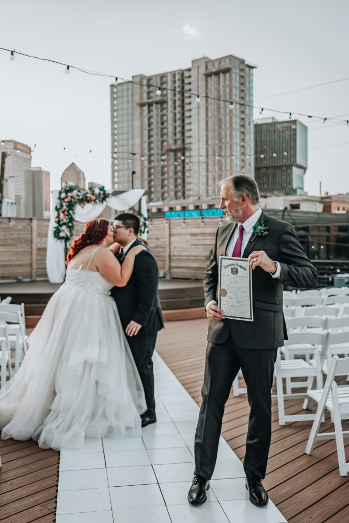 We didn’t meet in person with our officiant until about a month before the wedding—I think I put it off because I was feeling “meh” about the ceremony itself. I hardly remember moments from other people’s ceremonies. It’s special for the people getting married, of course, but not as big of a deal for the guests who want to party. (As an Enneagram 2, I fully realize how much I prioritized my guest’s experience at my wedding ahead of my own.) When we finally met with him, we clicked instantly. He helped me relieve some stress about my venue (oh, they were a trip) and after our conversation, promised to take care of everything for the ceremony, all we had to do was figure out our vows. The rest was up to him, but we would get a chance to review and offer feedback (and he was so open to feedback, which I really appreciated).