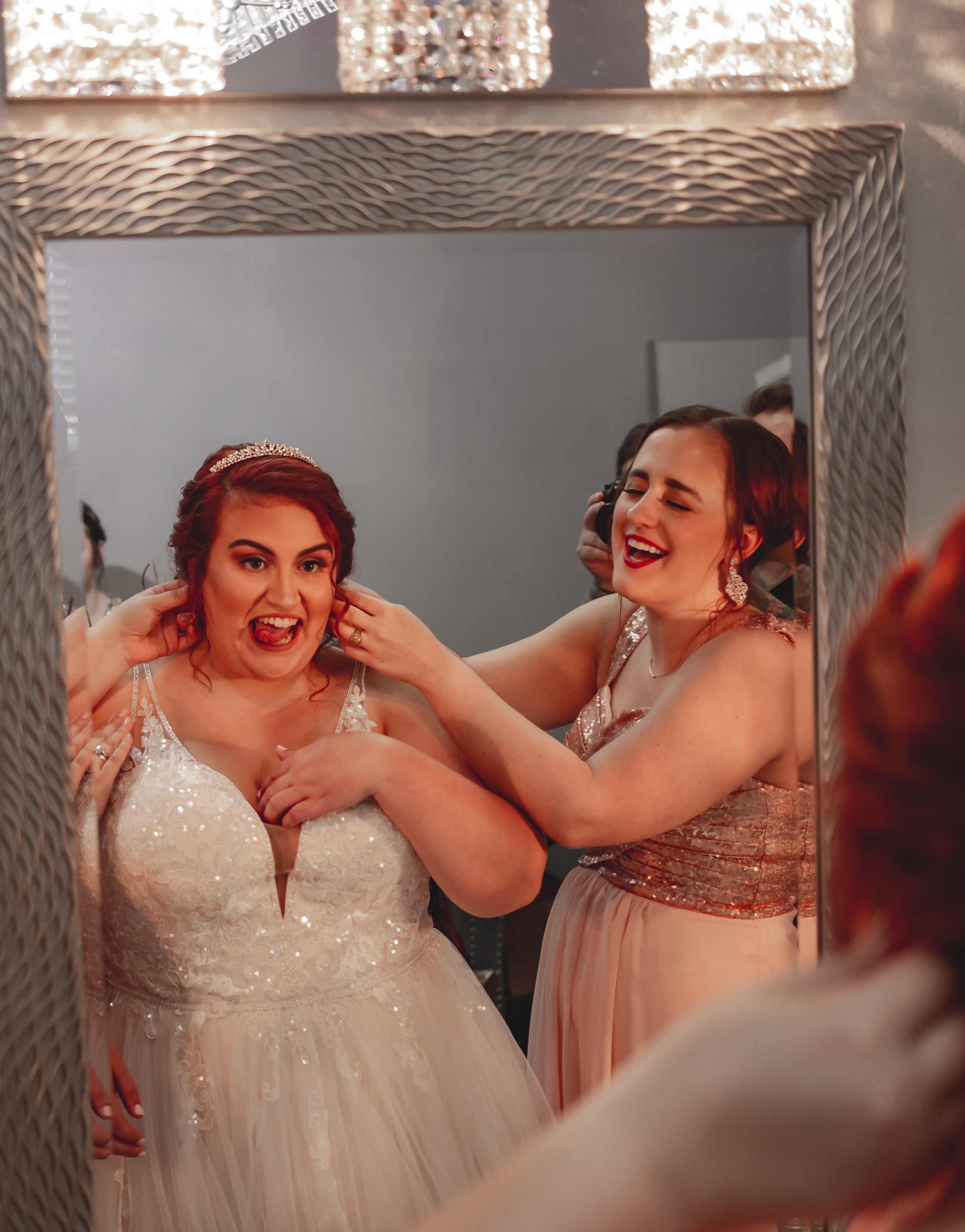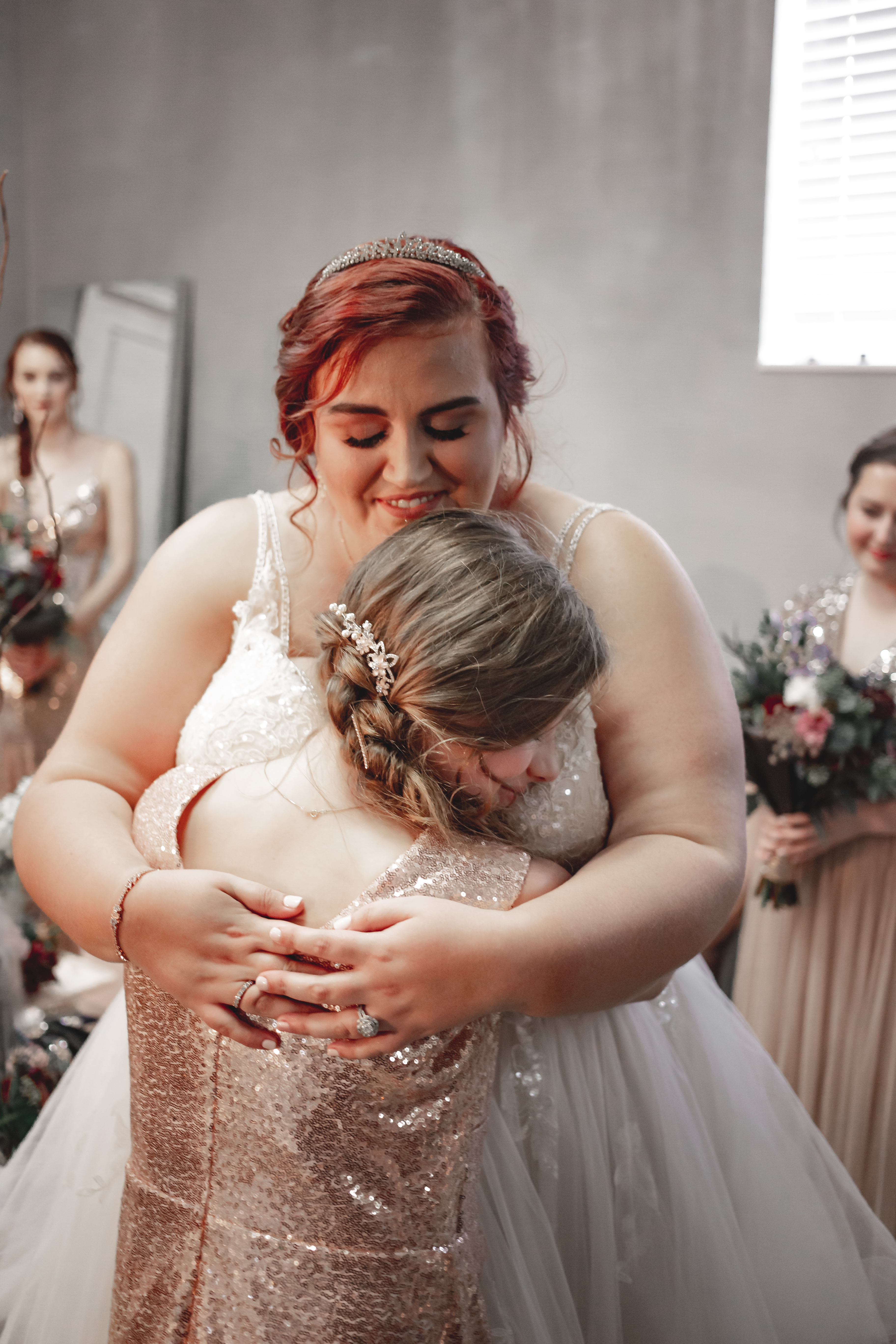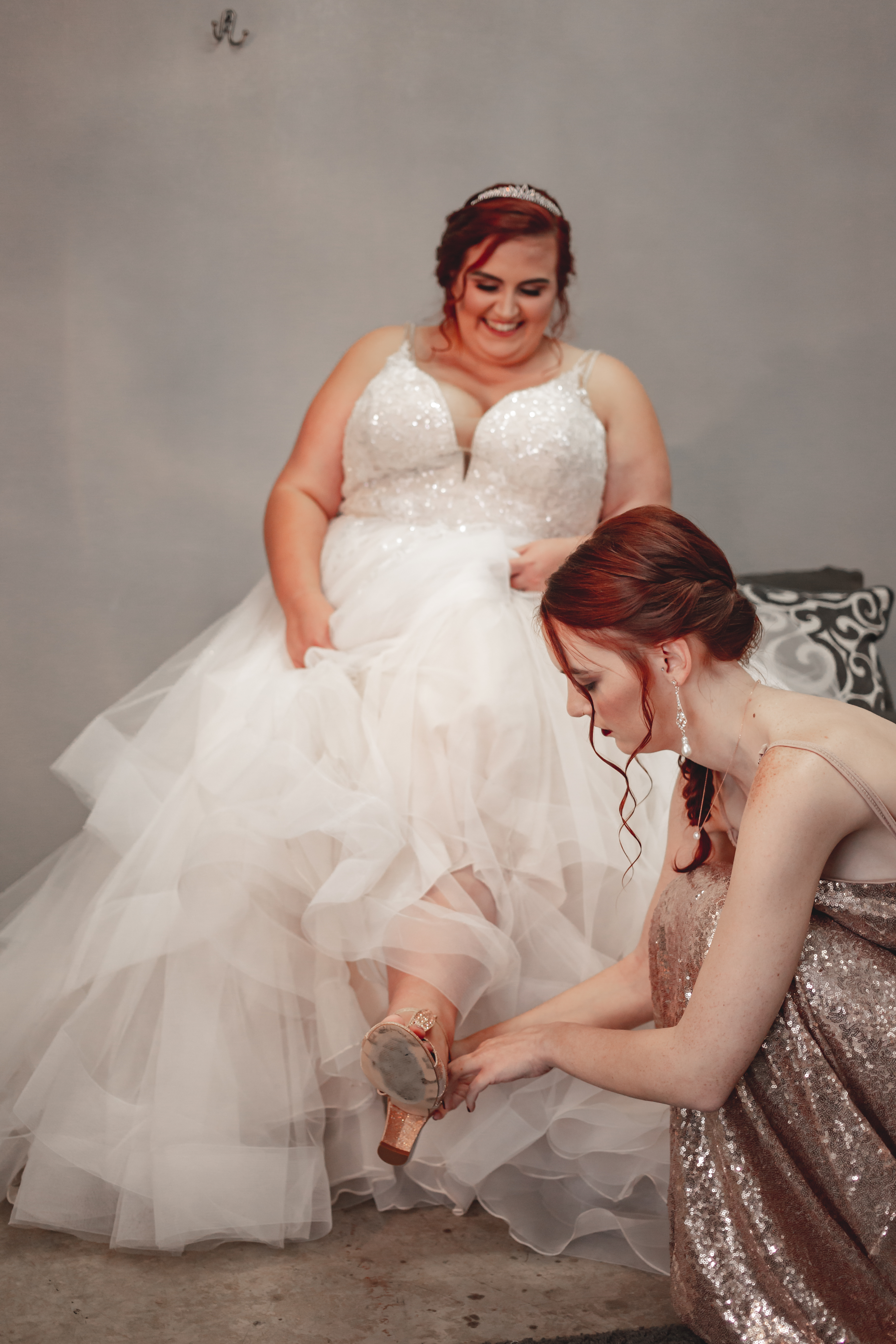 Our photographers had each of my bridesmaids help me put on one part of my look, from lacing the corset back to fastening my shoes to putting on my earrings (and dropping the back in my cleavage). I loved the special moments that created, where I got a little one-on-one time with each of my girls. For my something borrowed, I was lent my mom’s 25th wedding anniversary ring from my dad, with a tearful promise to share my own 25th (or whatever number-th) anniversary ring with my my own daughter or daughter-in-law in the future. My mom and I shared a set of jewelry that was used in my late grandmother’s wedding with my cousin Emma, my junior bridesmaid and closest thing to a sister. The three of us shared a sweet, tearful moment as I placed the necklace on her and shared the best hug, remembering Granny and feeling her with us. Taking our time to be present in those moments has left me with memories (and pictures, thankfully) that I will treasure forever.